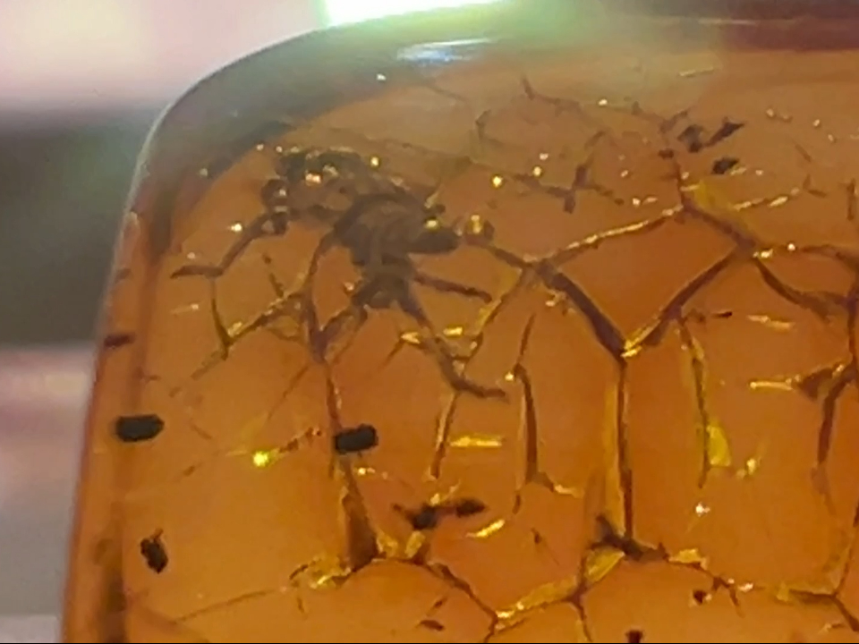По ее словам, янтарь, в котором законсервированы насекомые и пауки, — балтийский. Он найден недалеко от Калининграда и называется сукцинит.