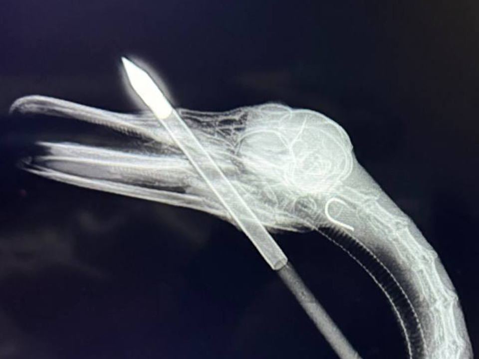 В Балашихе, в клинике «Зеленый попугай», успешно прооперировали селезня с арбалетной стрелой в голове и рыболовным крючком в горле. Как рассказал REGIONS спаситель птицы орнитолог, ветеринар Иван Краснов, сейчас жизни селезня ничего не угрожает, однако, изначально прогноз был крайне неблагоприятный.