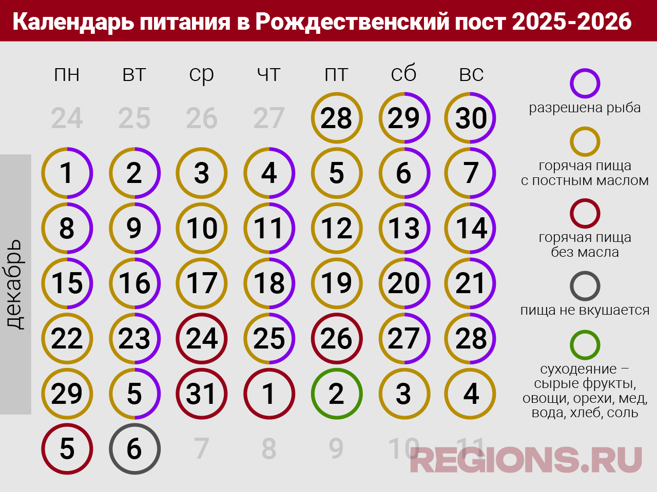 Рождественский пост 2025-2026 в России: календарь питания по дням, правила