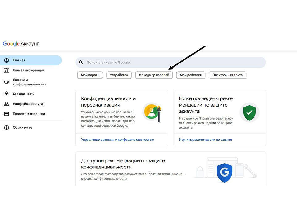 3. Выберите пункт «Перейти в настройки аккаунта Google», а затем — «Менеджер паролей».