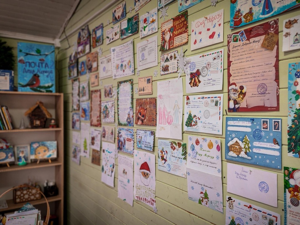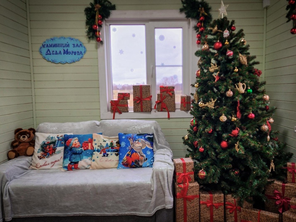 В парке «Бронницкий Луг» завершается подготовка резиденции Деда Мороза. В этом году она разместится в настоящем теплом доме. Внутри уже установили и нарядили две праздничные елки, окна украсили снежинками и рисунками. В ближайшее время пространство дополнят гирляндами. На стене — письма Деду Морозу прошлых лет.