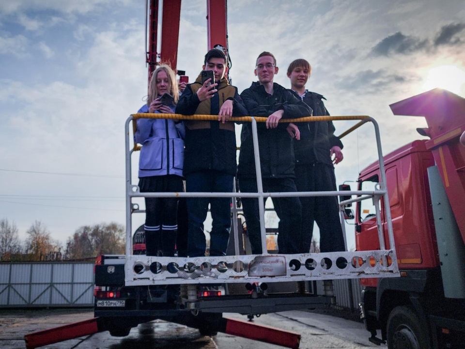 Подростки узнали, что мини-погрузчик «Бобкэт», несмотря на свой компактный размер, может выполнять сложные маневры и различные работы. Например, если на него установить щетку — подметет дорогу от листвы и снега, а с ковшом выкопает небольшой котлован.