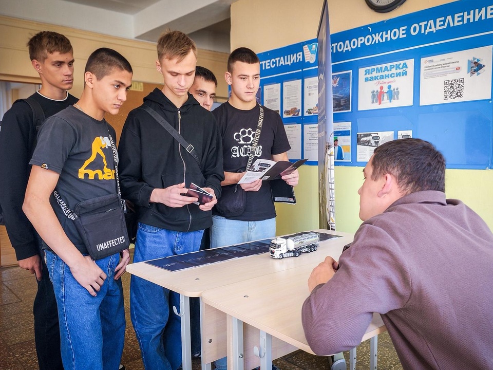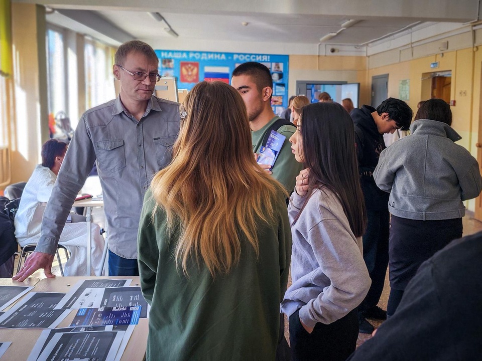 На ярмарке вакансий в бронницком колледже собрались студены выпускных курсов и представители организаций-партнеров колледжа: предприятия по ремонту и обслуживанию грузового транспорта и главное управление специальных программ президента РФ.