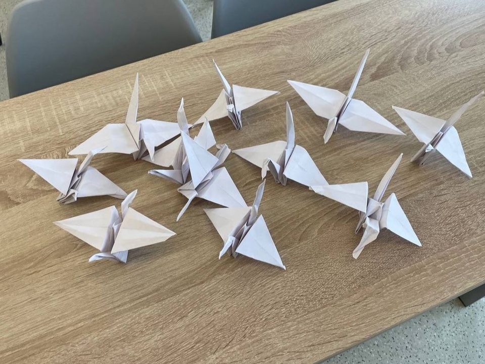 Практическая часть: сделали бумажных журавликов, которые традиционно символизируют решимость и волю к преодолению трудностей.