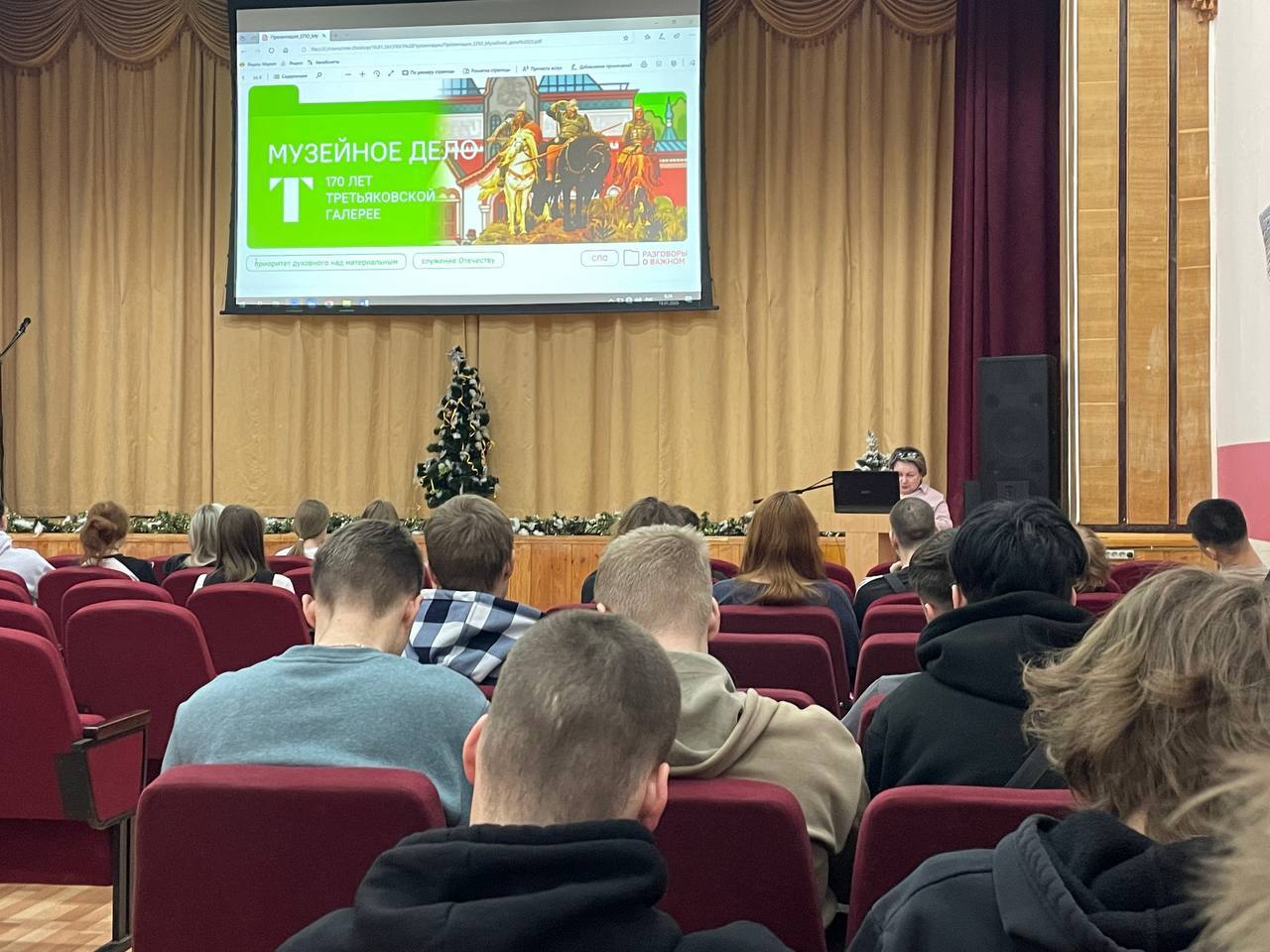 Новая учебная неделя в бронницком автомобильно-дорожном колледже (АДК) началась с интерактивного занятия из всероссийского образовательного цикла «Разговоры о важном». Сегодня оно было посвящено теме «Музейное дело. 170 лет Третьяковской галерее».