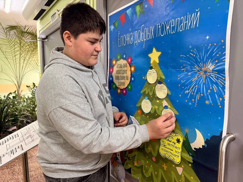 А для тех, кто хочет поделиться своим новогодним настроением со всем колледжем, рядом с почтой Деда Мороза расположилась Елка пожеланий, на которую каждый может повесить свой «шарик».