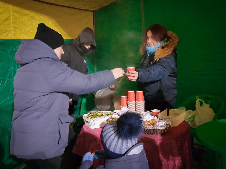 В Бронницах ребята из «Молодой Гвардии» и «Волонтеров Подмосковья» совместно с администрацией города организовали у купели пункт питания, чтобы участники крещенских омовений могли согреться и подкрепиться после духовно-физического подвига.