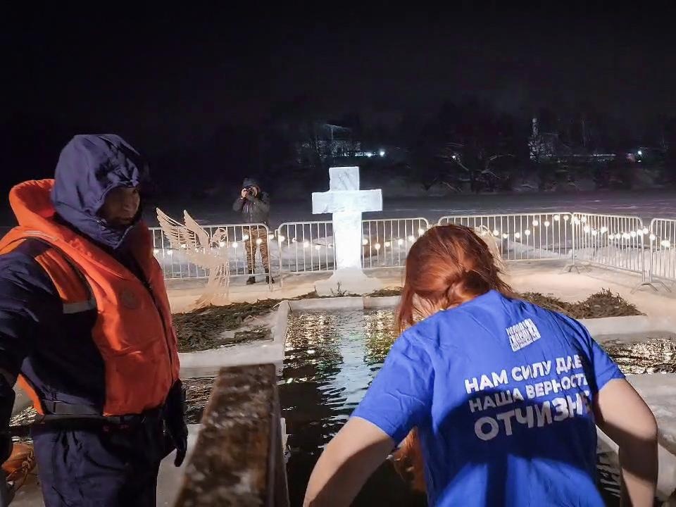Молодогвардейцы и сами окунаются в прорубь — стараются идти одними из первых, чтобы показать пример молодым ребятам.