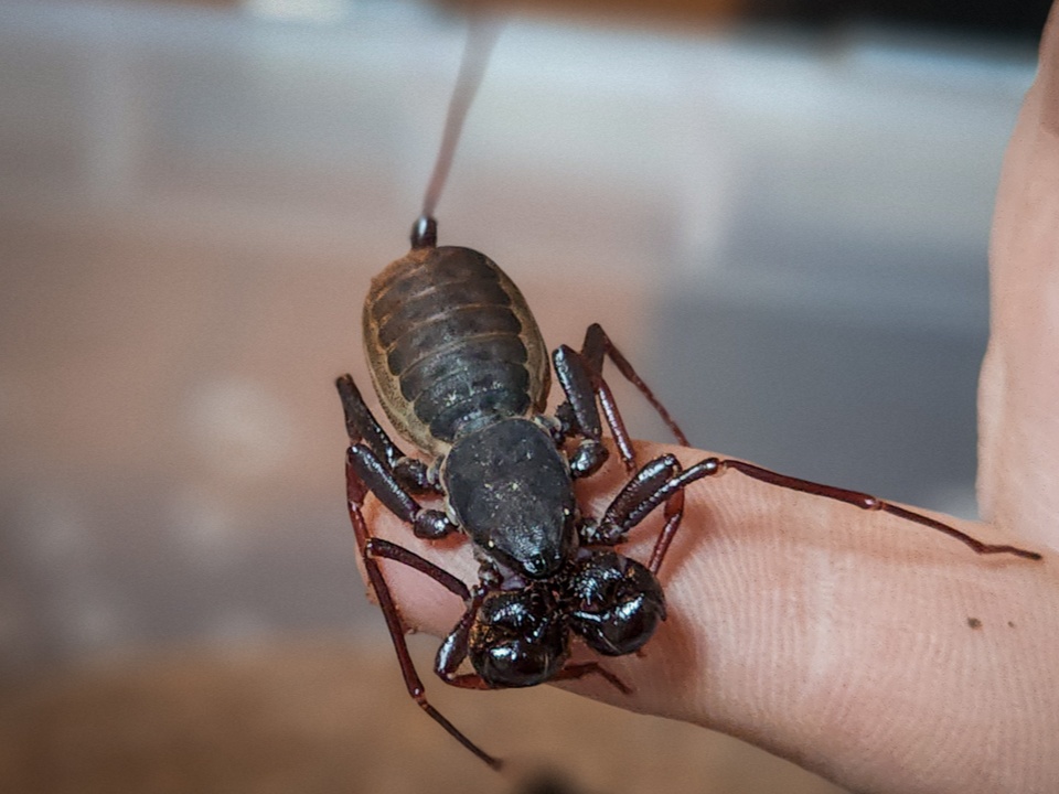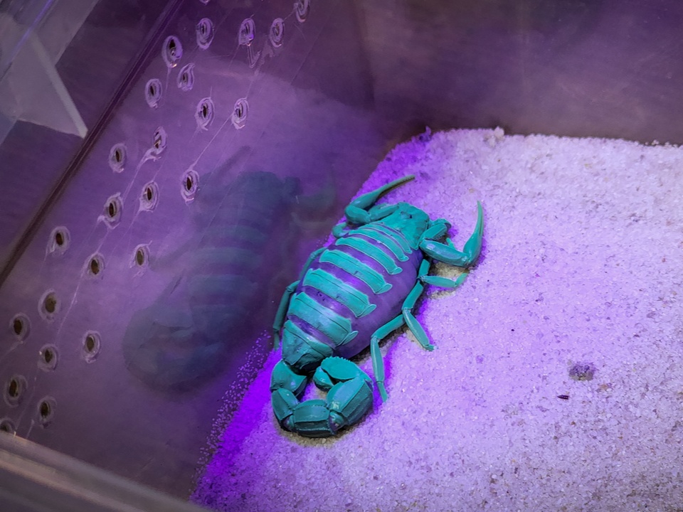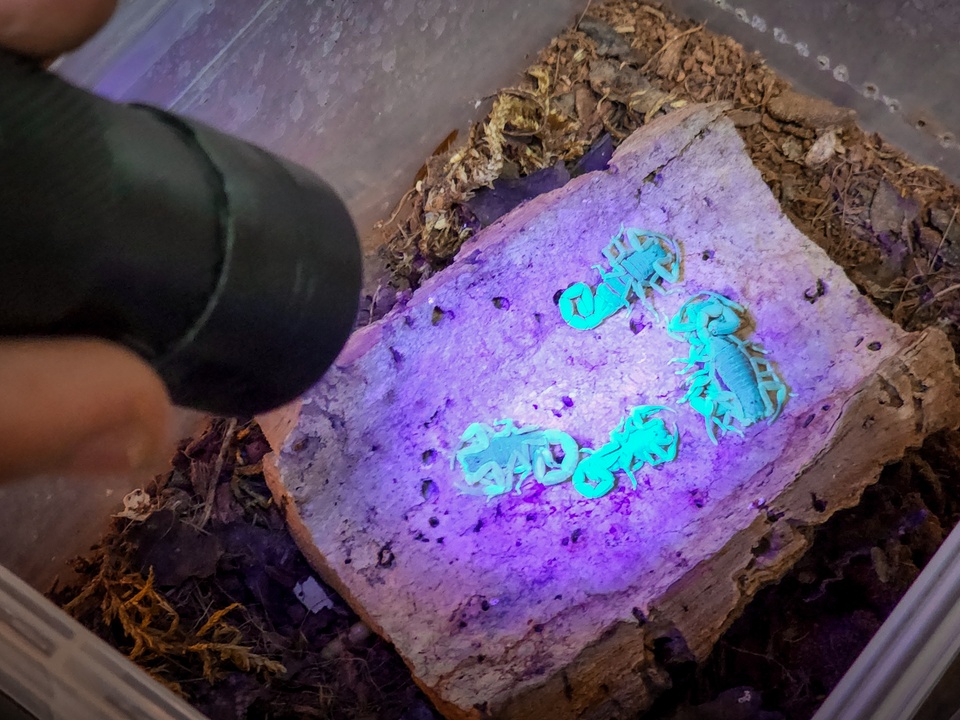 «Один прячется, другой норовит выползти из террариума, третий только притворяется спящим и при случае убегает. Скорпионы светятся при инфракрасном свете, а пауков можно разглядеть при свете фонарика», — рассказывает Надежда.