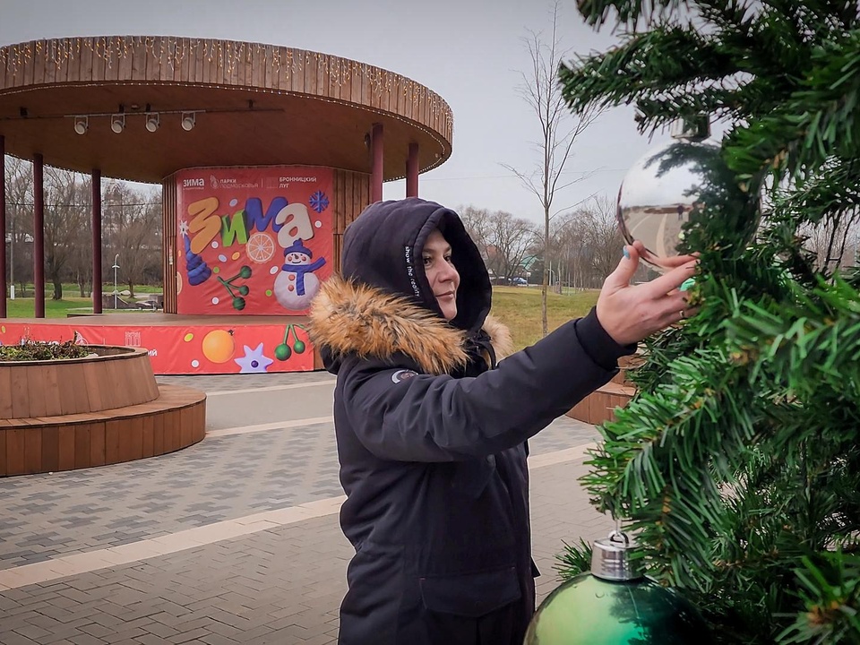 В парке «Бронницкий Луг» установили елку, в купольной беседке оформили фотозону в ностальгическом ретростиле. Появилось стильное брендирование губернаторского проекта «Зима в Подмосковье»: украсили сцену, фотозону, терем и горку, обустроили резиденцию Деда Мороза.