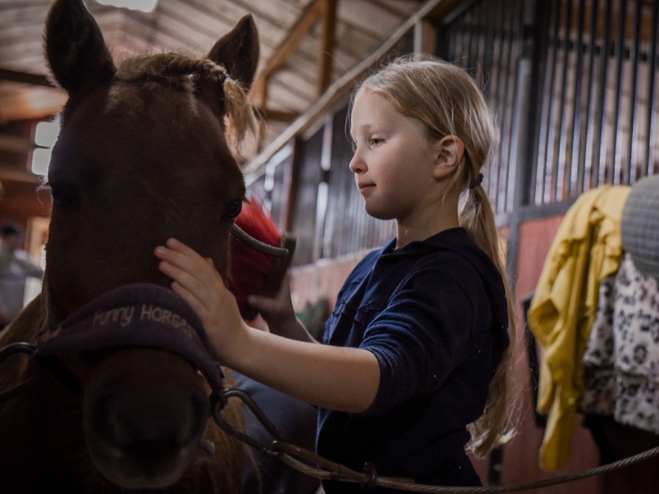 Общение с лошадьми очень полезно — оно помогает ребенку социализироваться. Занятия улучшают физическую подготовку и воспитывают в детях ответственность. Шестилетняя Таня ходит в клуб с трех лет — катается на лошадях и ухаживает за ними.