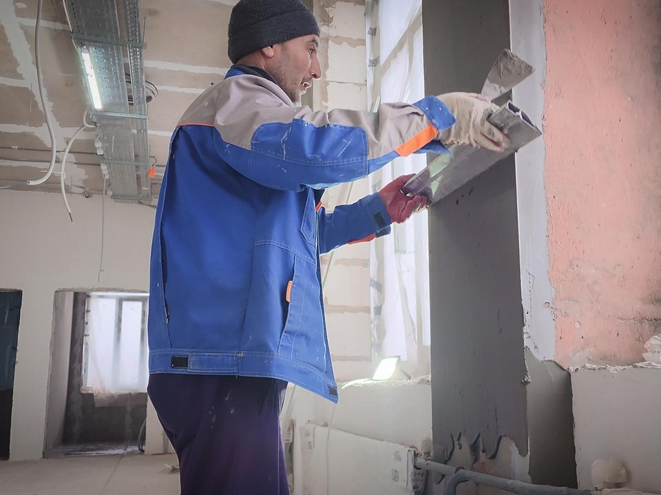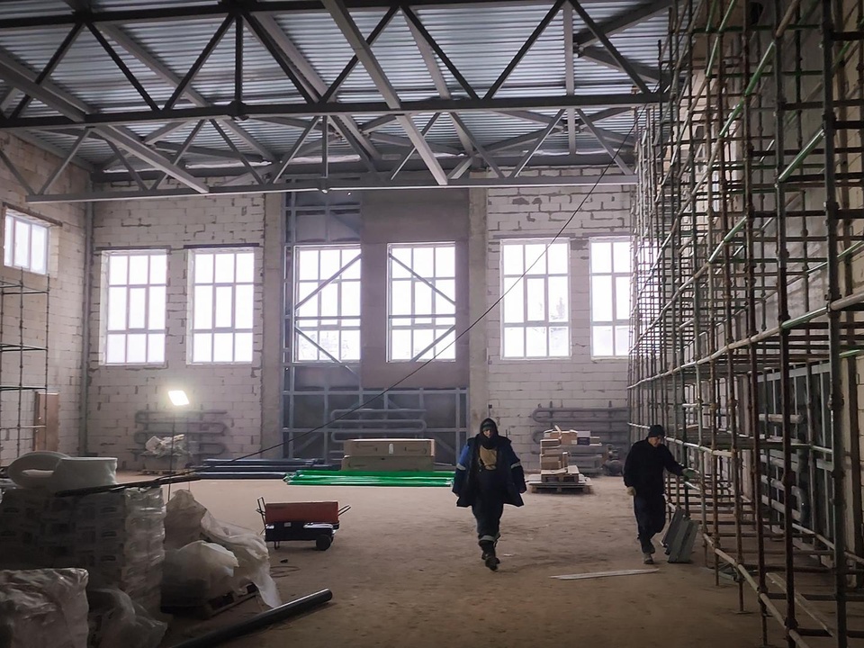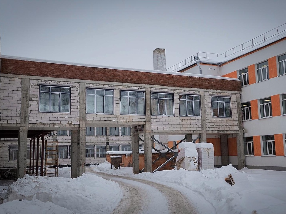 Контур корпуса площадью более шести тысяч квадратных метров полностью закрыт. Строители ведут предчистовую отделку помещений — первый слой шпаклевки выполнен на 95%. Завершены работы по стяжке полов и оштукатуриванию стен. Начали работы по монтажу инженерных сетей — водопровода и вентиляции.