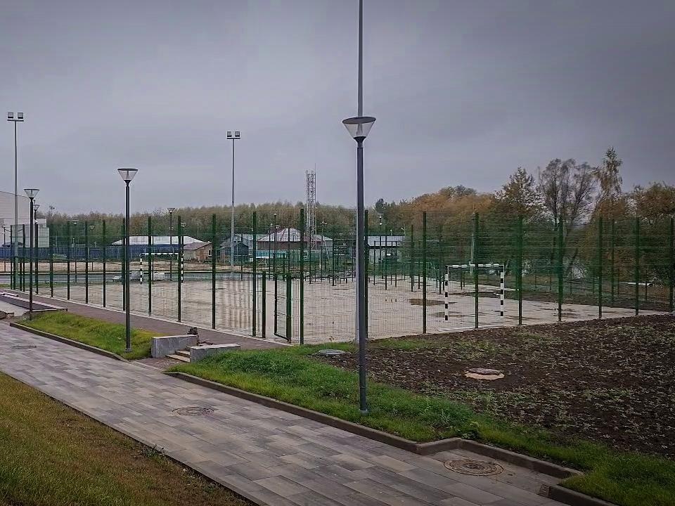 Спортивные уличные площадки готовы, уложено специальное прорезиненное покрытие. Сейчас на объекте задействовано 25 рабочих.