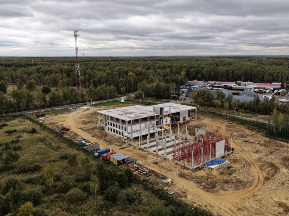 Строится трехэтажное административное здание, моечный комплекс и станция техобслуживания для большегрузов. Сейчас на объекте ведутся монолитные работы, строители возводят конструкции надземной части здания и прокладывают наружные инженерные сети.