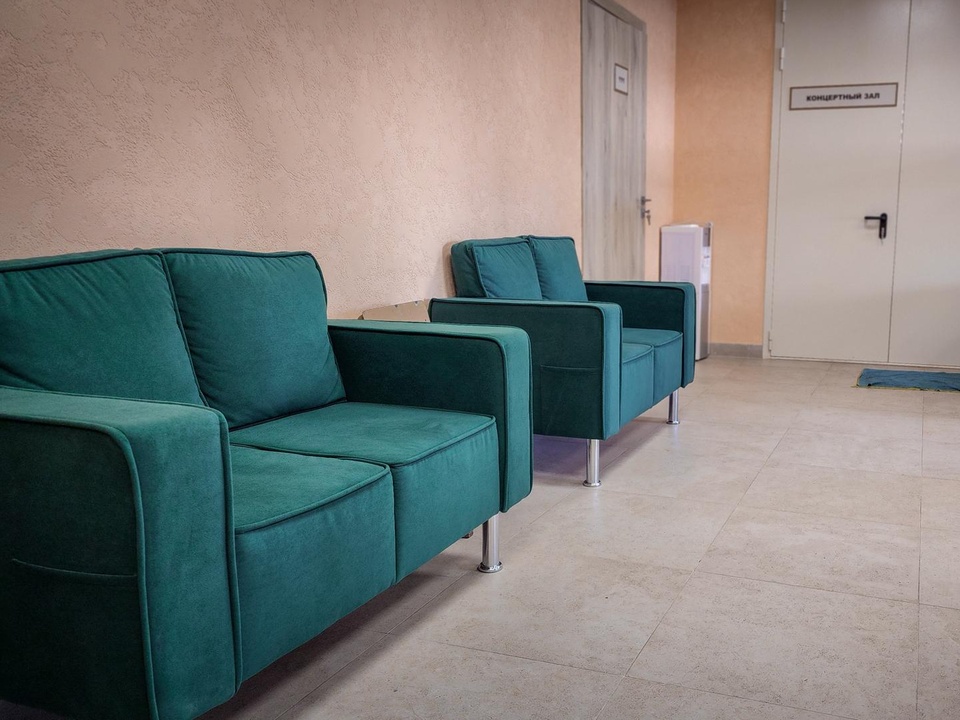 В фойе установили пропускную систему. Здесь появились гардероб и диваны для комфортного ожидания детей. Разноуровневый пол переделали на ровный, что удобно для передвижения маломобильных воспитанников.
