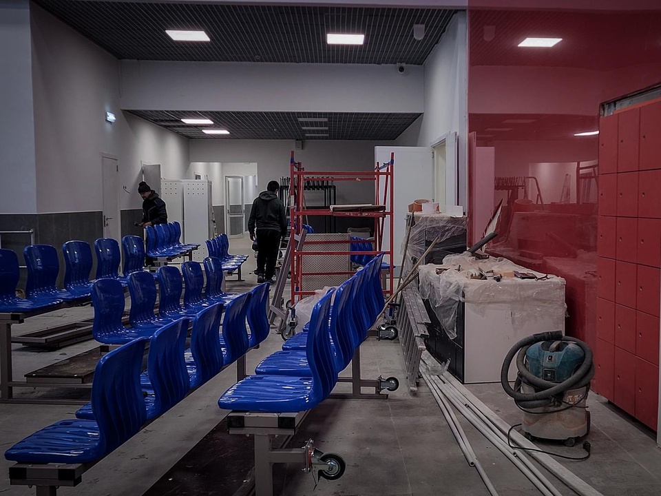 Строительство физкультурно-оздоровительного комплекса (ФОК) «Бельский» близится к завершению. Сейчас здесь ведутся отделочные работы и монтаж оборудования. Строители монтируют трибуны для установки в спортзал, в кабинетах расставляют мебель. Специалисты завершают пусконаладку инженерных систем.