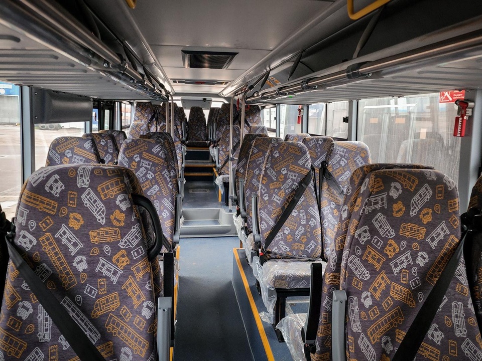 Новые автобусы отличаются улучшенной комплектацией. Салон рассчитан на 41 посадочное место (ранее — 32) и может вместить до 100 пассажиров. Установлены системы климат-контроля, видеонаблюдения и электронные рейсоуказатели. В автобусах есть USB-розетки для зарядки устройств и валидаторы для бесконтактной оплаты проезда.