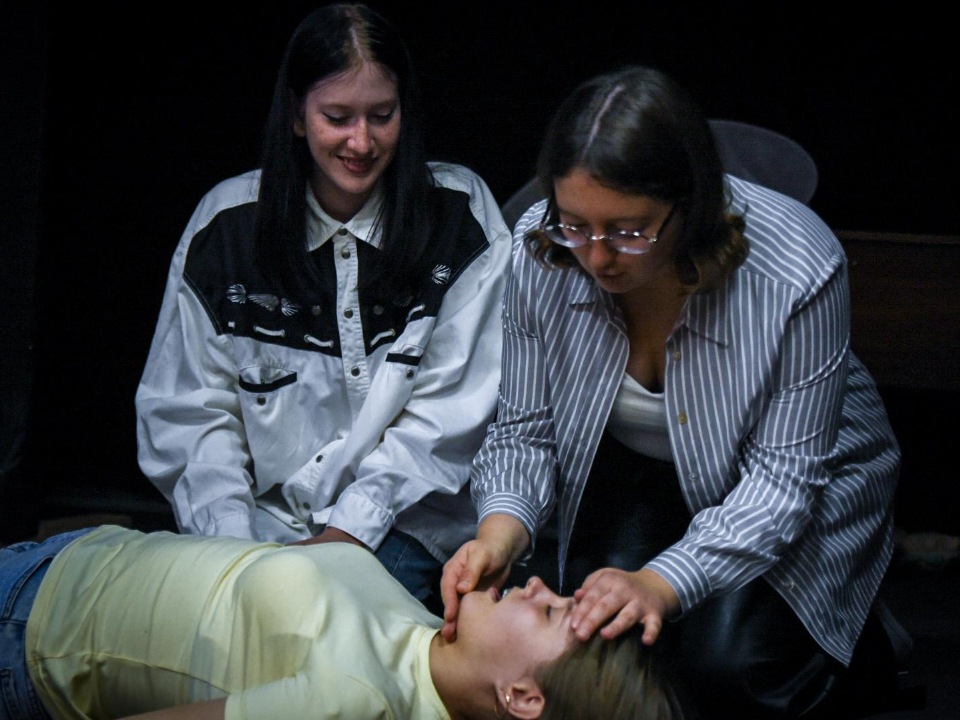 После теории приступили к практической части. Под руководством молодого специалиста участники научились правильно классифицировать различные виды кровотечений. Они бинтовали друг другу головы, руки, накладывали шины, а также учились проводить сердечно-легочную реанимацию.