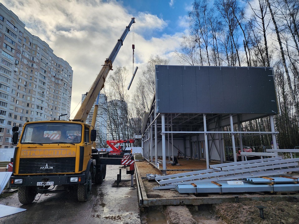 «Выполнили металлический каркас, выполняем монтаж сандвич-панелей, в ближайшее время придет остекление, инженерные системы и приступим к внутренним работам. Входная группа заказана, через несколько недель придет, а завершение работ и пуск парка в эксплуатацию ожидаем в конце декабря», — объяснил руководитель.