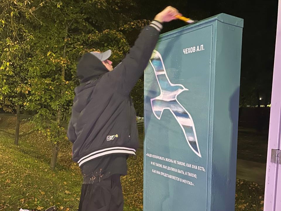 «На улице Гагарина, 36 мы изобразили летчика Алексея Ивановича Маркова, на улице Чехова — строки из известного произведения Антона Павловича Чехова „Чайка“ и изображение чайки. Было предложено авторское видение. Полагаю, в Ростелекоме нашли меня через соцсети, в Чехове не так много художников, кто еще и умеет работать на стенах и других объектах», — рассказала REGIONS Офицерова.