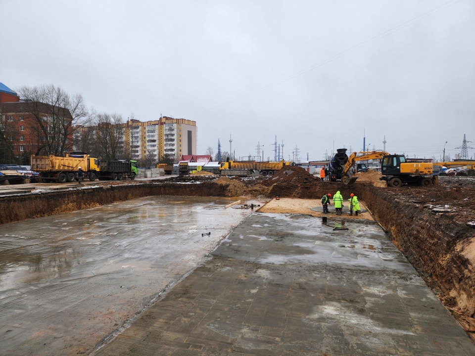 «На объекте уже завершили возведение стройгородка, демонтировали все старые конструкции, опилили сухостойные и аварийные деревья, оградили территорию и начали разработку котлована. На дне котлована делают основу для фундаментной плиты», — пояснил строитель.