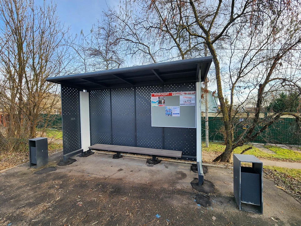 Эти конструкции защищают от осадков, порывов ветра и ярких солнечных лучей, на скамейке можно отдохнуть, а на стенке — увидеть расписание автобусных маршрутов. В этом месте останавливаются автобусы № 41 ст. Чехов — Манушкино, № 21 ст. Чехов — ф-ка Пролетарий, № 29 ст. Чехов — платформа Луч с заездом в Сенино, Сафоново и санаторий Русское Поле.