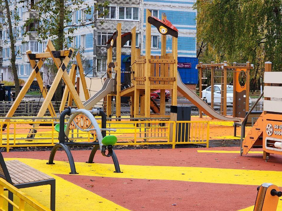 Во дворе дома № 31 на улице Космонавтов в Дмитрове подрядная организация сдала в эксплуатацию современный спортивно-игровой комплекс, рассчитанный на жителей всех возрастов.