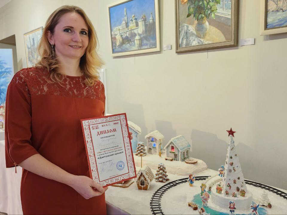 Особое внимание привлекла работа дмитровского педагога Екатерины Филипповой, удостоенной «Приза зрительских симпатий». В одиночку она воссоздала сказочный новогодний городок из своего детства: большую елку, вокруг — веселых детей, паровозик для катаний и яркие аттракционы — все выполнено в пряничной технике с тонкой разноцветной глазурью.