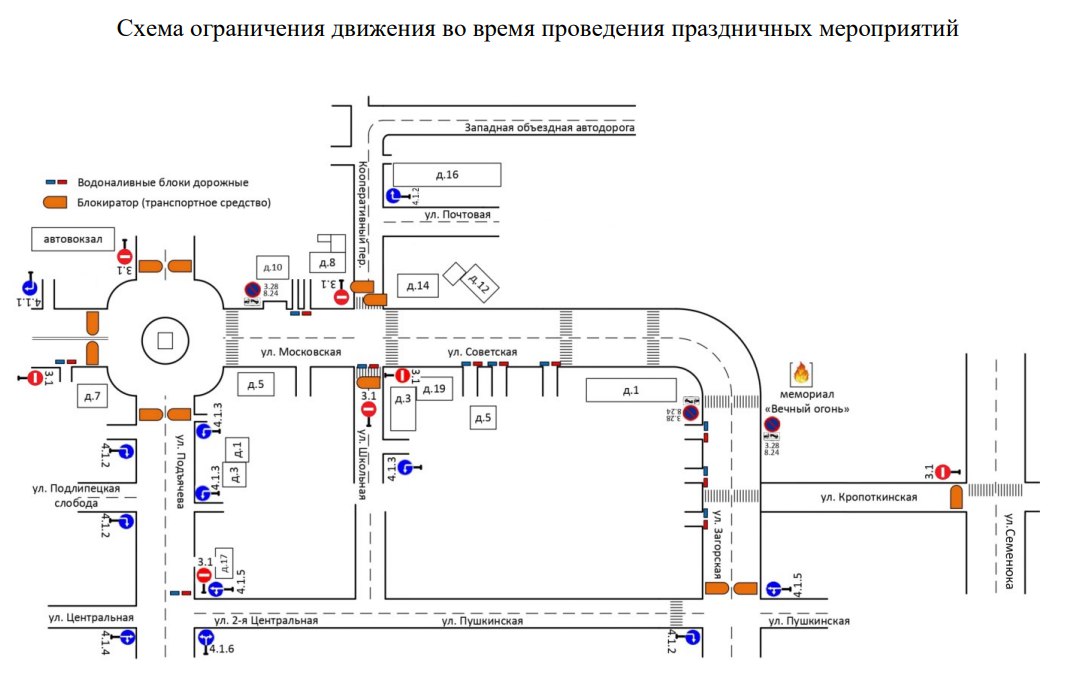 Под запрет попадают следующие улицы: ул. Загорская, ул. Советская, ул. Школьная, пер. Кооперативный, ул. Московская, ул. Подъячева.