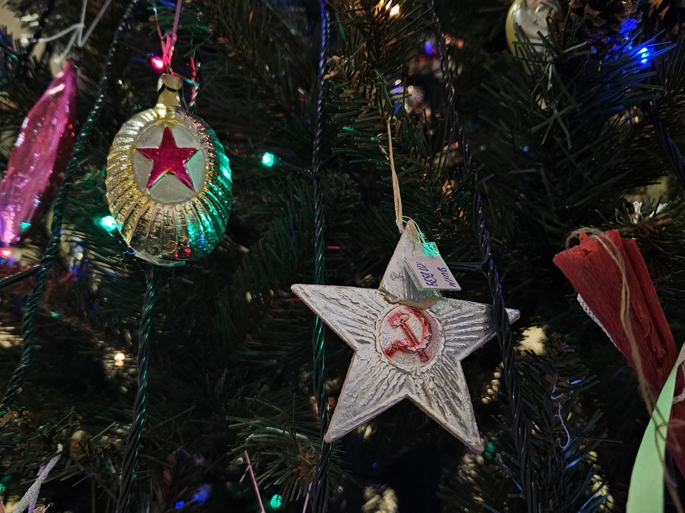 На елке можно найти фигурки космонавтов – их начали изготавливать после полета Юрия Гагарина. А после возведения Останкинской телебашни елку начали украшать миниатюрами вышки.