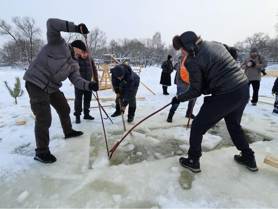 Сегодня, 17 января, мастера приступят к созданию главного украшения площадки — резной ледяной арки и массивного ледяного креста весом около 300 кг. Финальные приготовления запланированы на утро 18 января. Тогда на берегу появятся теплые шатры для переодевания и мостки до купели, также организуют точку с бесплатными горячими напитками и художественную подсветку всего пространства.