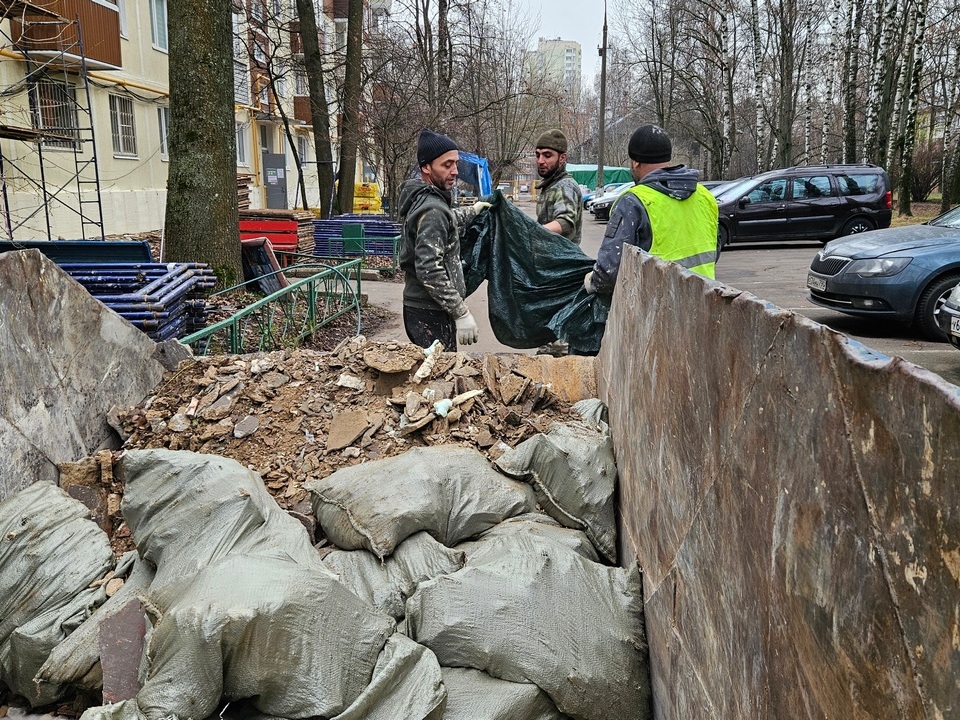 Строители готовятся к ремонту входных групп во всех четырех подъездах.