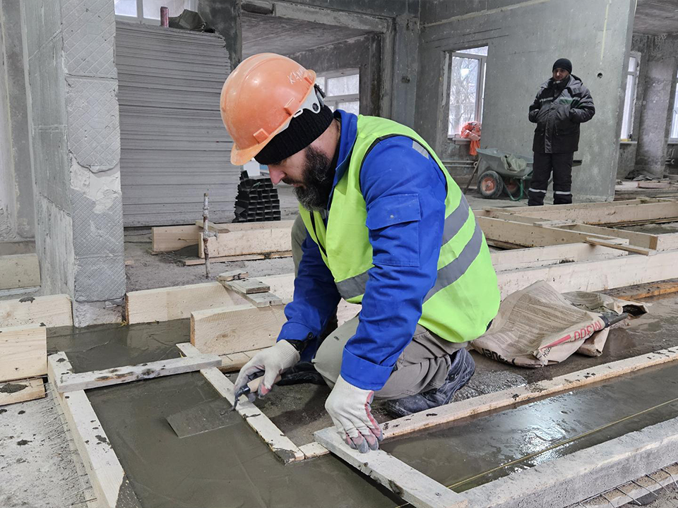 Одновременно строители выполняют заливку черновой стяжки пола и проводят дополнительное утепление перекрытий подвала и первого этажа. Эти работы имеют особое значение, поскольку в группах предусмотрена установка системы теплого пола.