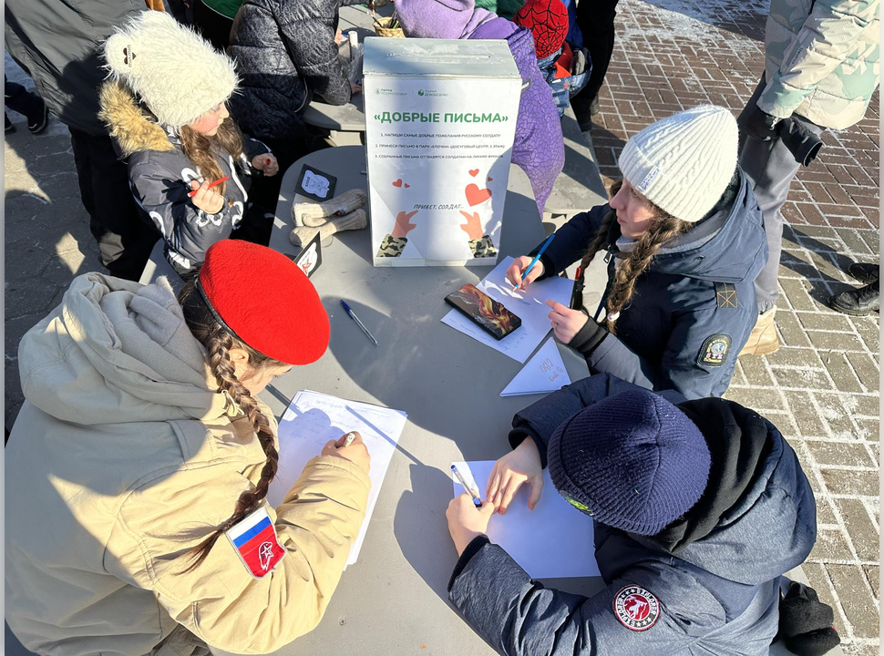 На центральной площади парка «Елочки» в Домодедове прошла патриотическая акция «Письмо солдату». Волонтеры движения «Юнармия» помогали всем желающим написать послания для военнослужащих, находящихся в зоне специальной военной операции. В акции приняли участие как взрослые, так и дети.