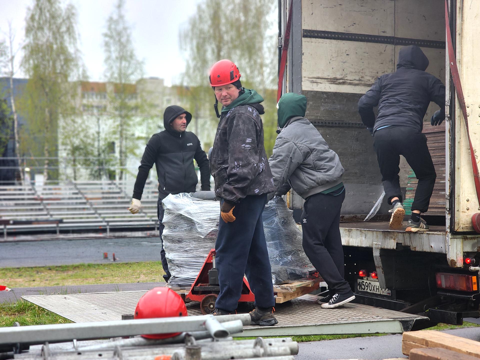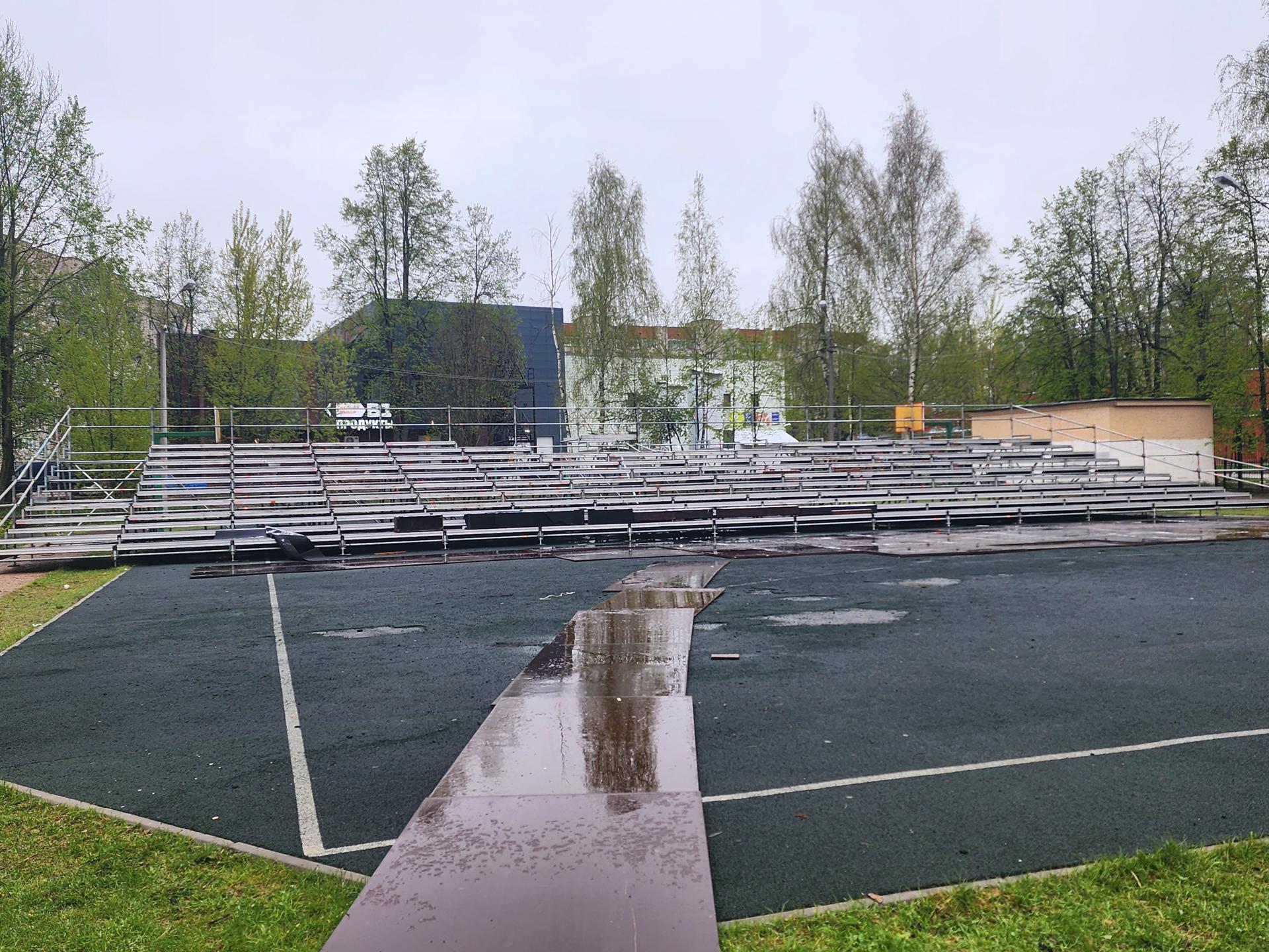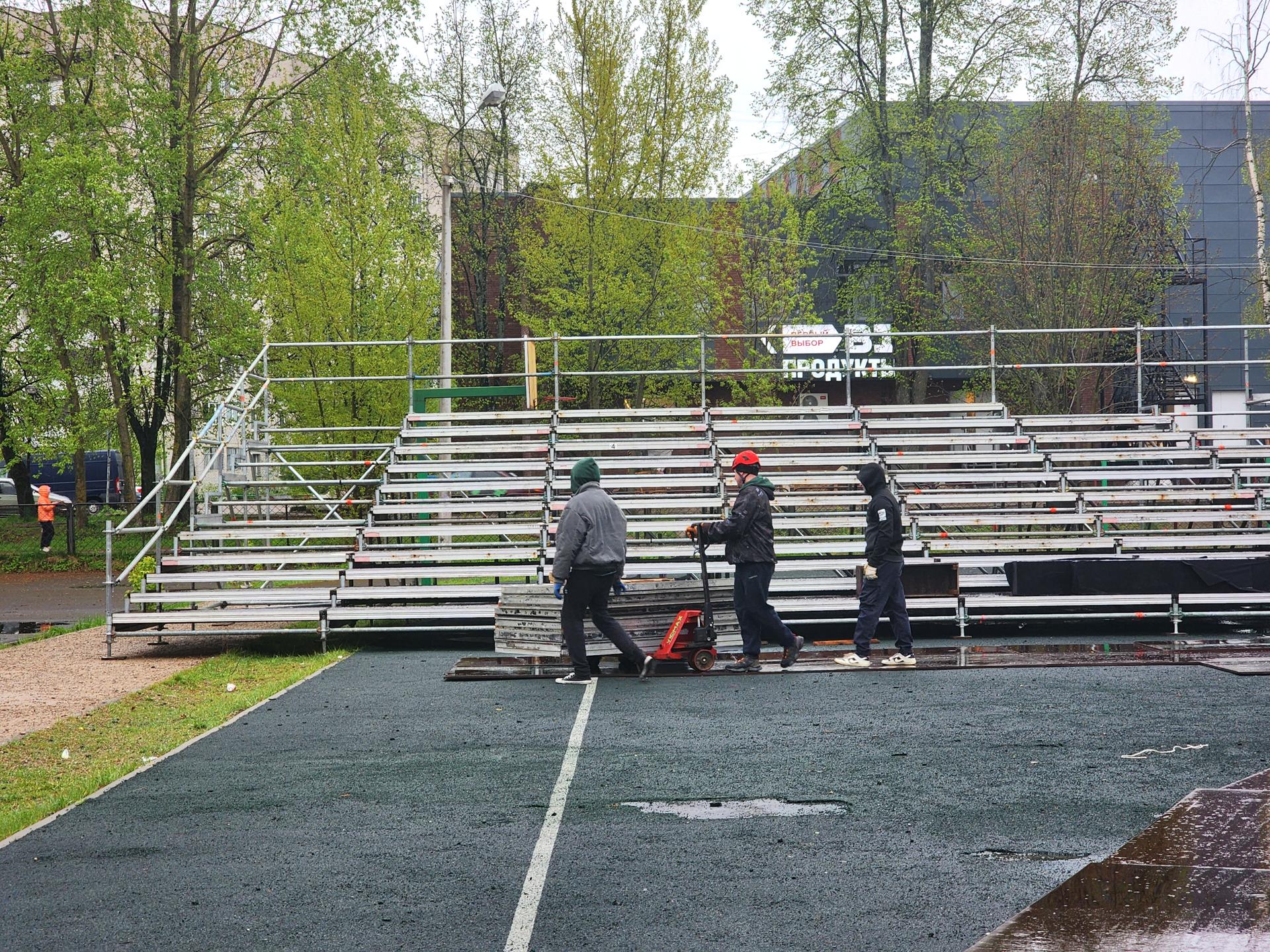 На стадионе школы № 2 продолжаются работы по установке сборно-разборных трибун и подготовке сцены для праздничного мероприятия. 9 мая здесь состоится открытый концерт, посвященный 80-летию Победы. Дубненский симфонический оркестр исполнит «Ленинградскую симфонию».
