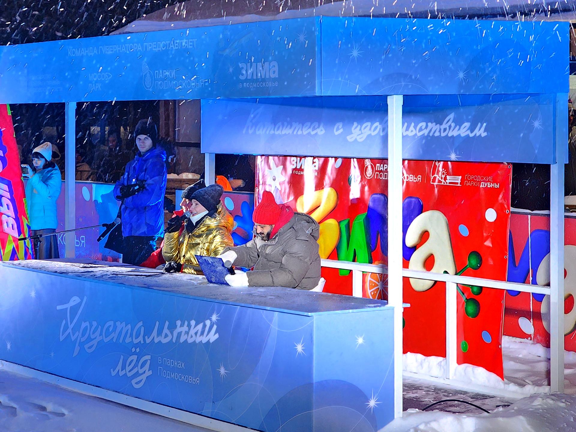 Сильный снегопад и по-настоящему январские морозы, вызванные циклоном «Фрэнсис», не испугали дубненцев. К началу представления трибуны парка «Набережная им. Д. И. Менделеева» были заполнены. Свободных «окошек» не оставалось даже вдоль бортика катка.