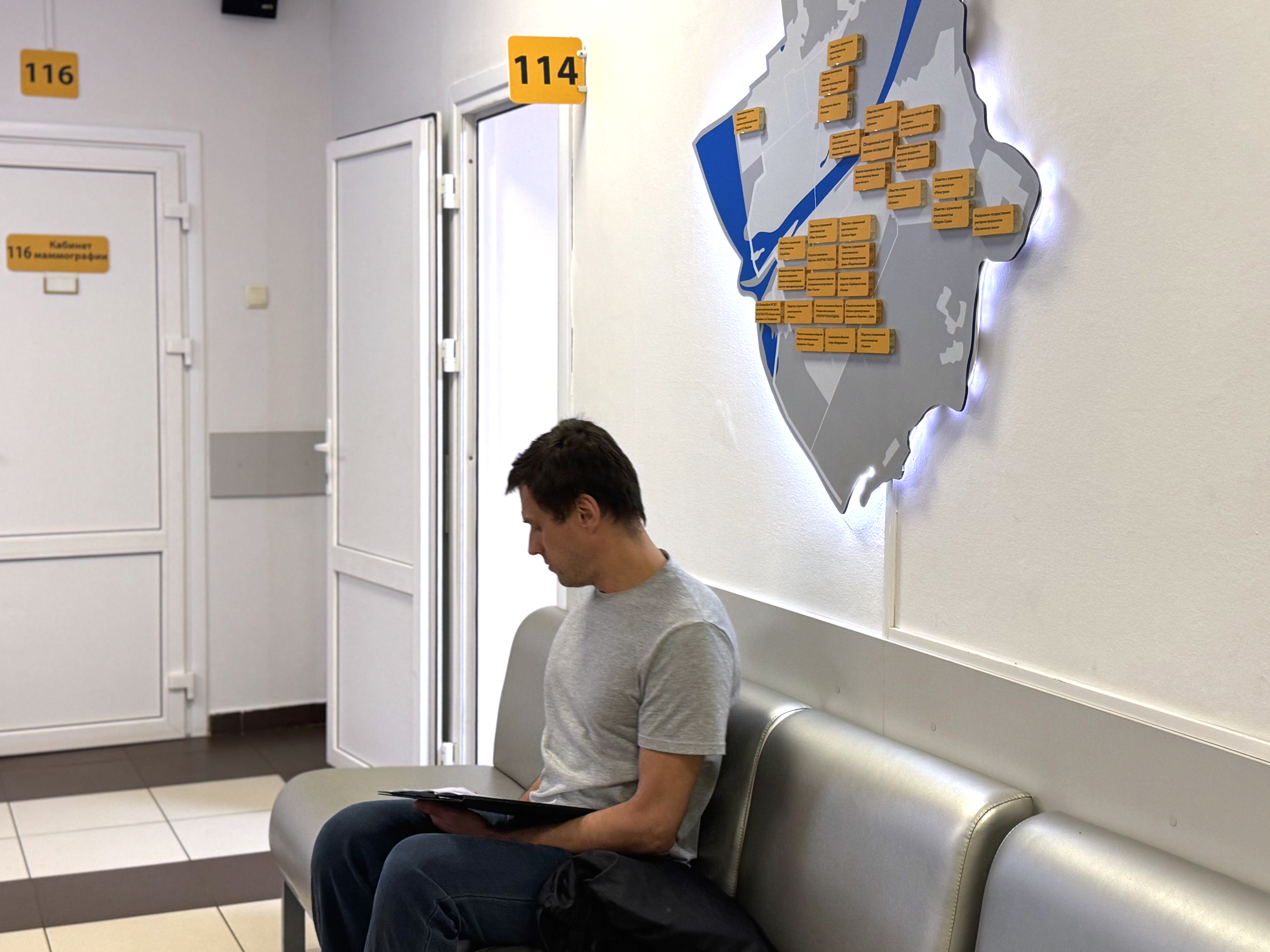 Процедура занимает всего около 30 минут. При входе пациенту выдают специальный браслет, который автоматически отслеживает его место в электронной очереди — никаких бумажных талонов и ожидания в коридорах.
