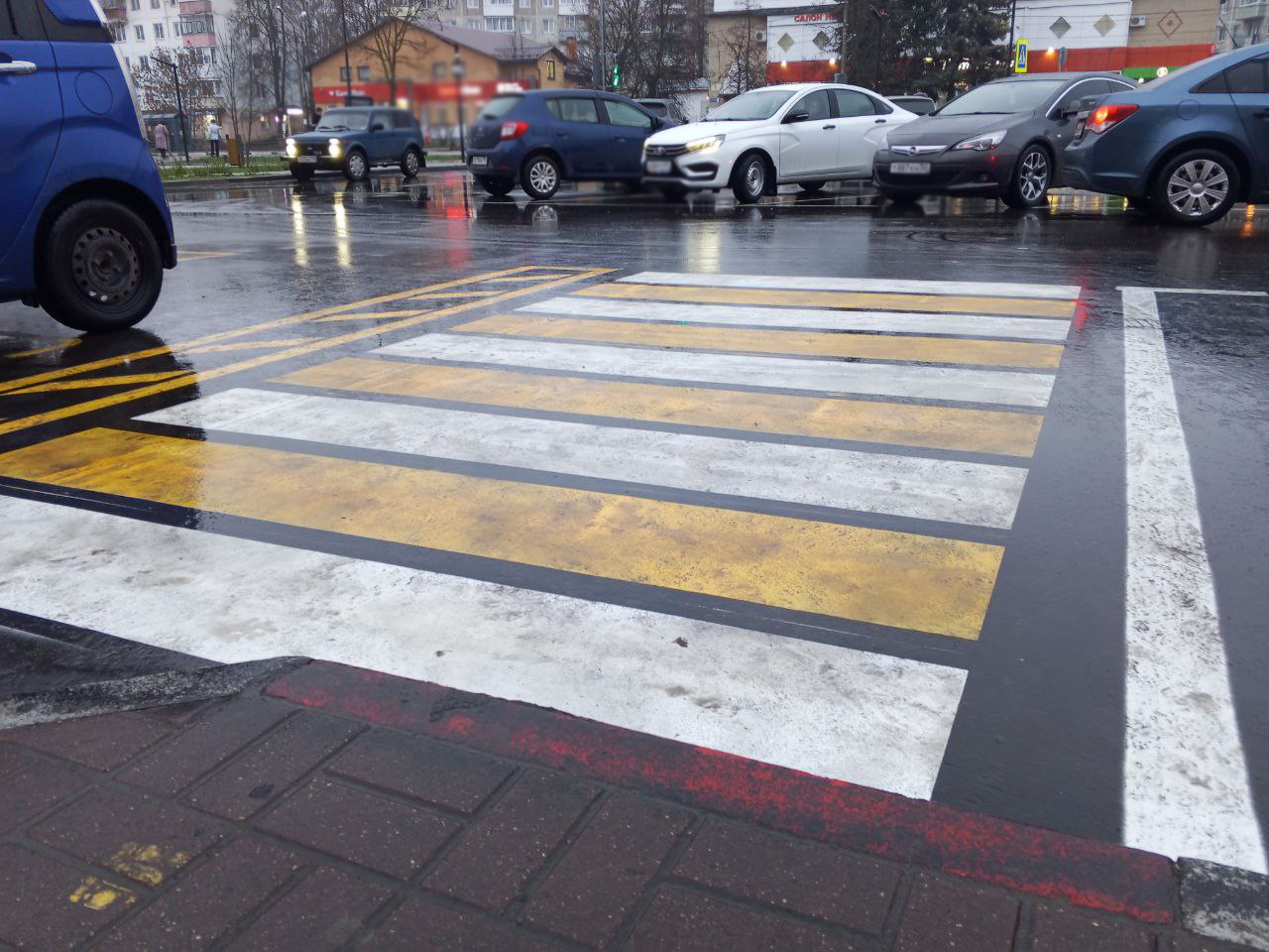 Дорожные службы нанесли новую разметку у крупного ТЦ в Егорьевске. Речь идет о «Гранде» на проспекте Ленина.