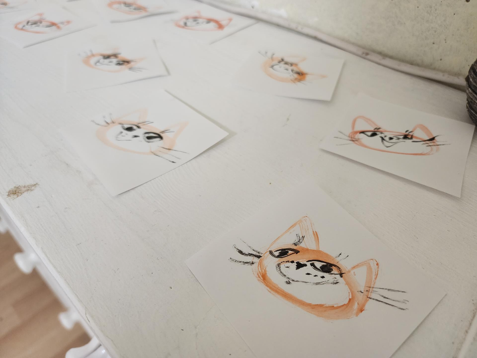 Супруги называют свою мастерскую «Кот и Кет». Идея родилась из желания совершать добрые дела и «искупать грехи», принося радость людям. Супруги рисуют кошек в наивном стиле, намеренно делая их простыми, чтобы каждый мог повторить.
