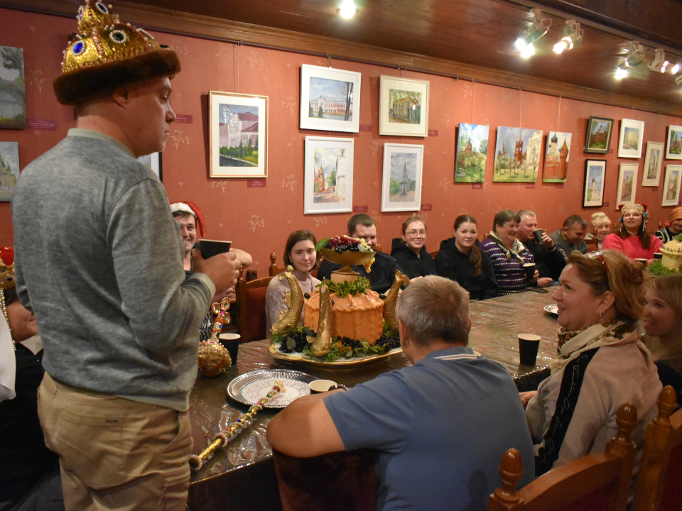 Гостям представили интерактивную музейную программу «Веселие на Руси». Всех собравшихся усадили за царский стол, уставленный яствами, выбрали Царя и Царицу, а затем провели настоящий царский пир.