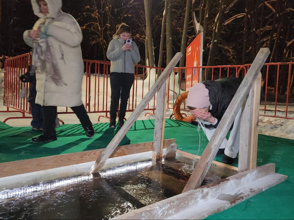 На Княжеском пруду обустроили безопасные подходы к купели. Каждый мог для себя определить сам: либо совершить омовение, либо умыться освященной водой.