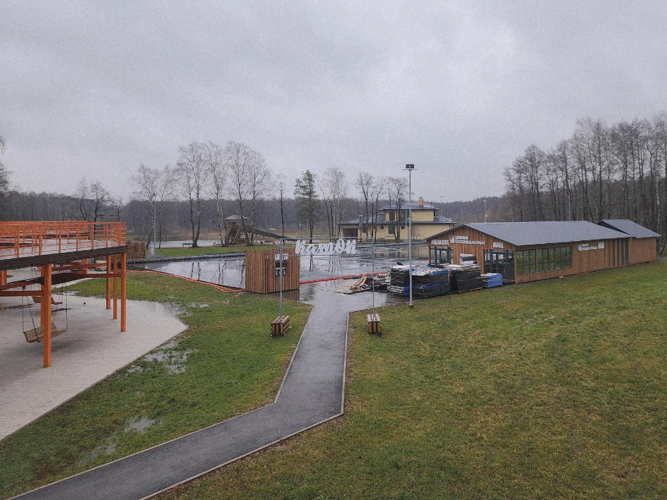 В парке «200 лет Егорьевску» устанавливают каток с искусственным покрытием. В этом году ледовую площадку разместят на новом месте — рядом со смотровой площадкой.