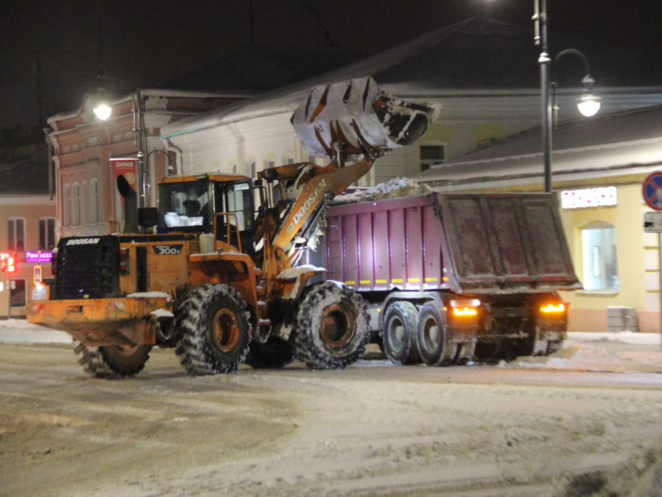 Так, с Соборной площади погрузчики и самосвалы вывозят скопившейся снег. Одновременно очищают от снежной массы тротуары.