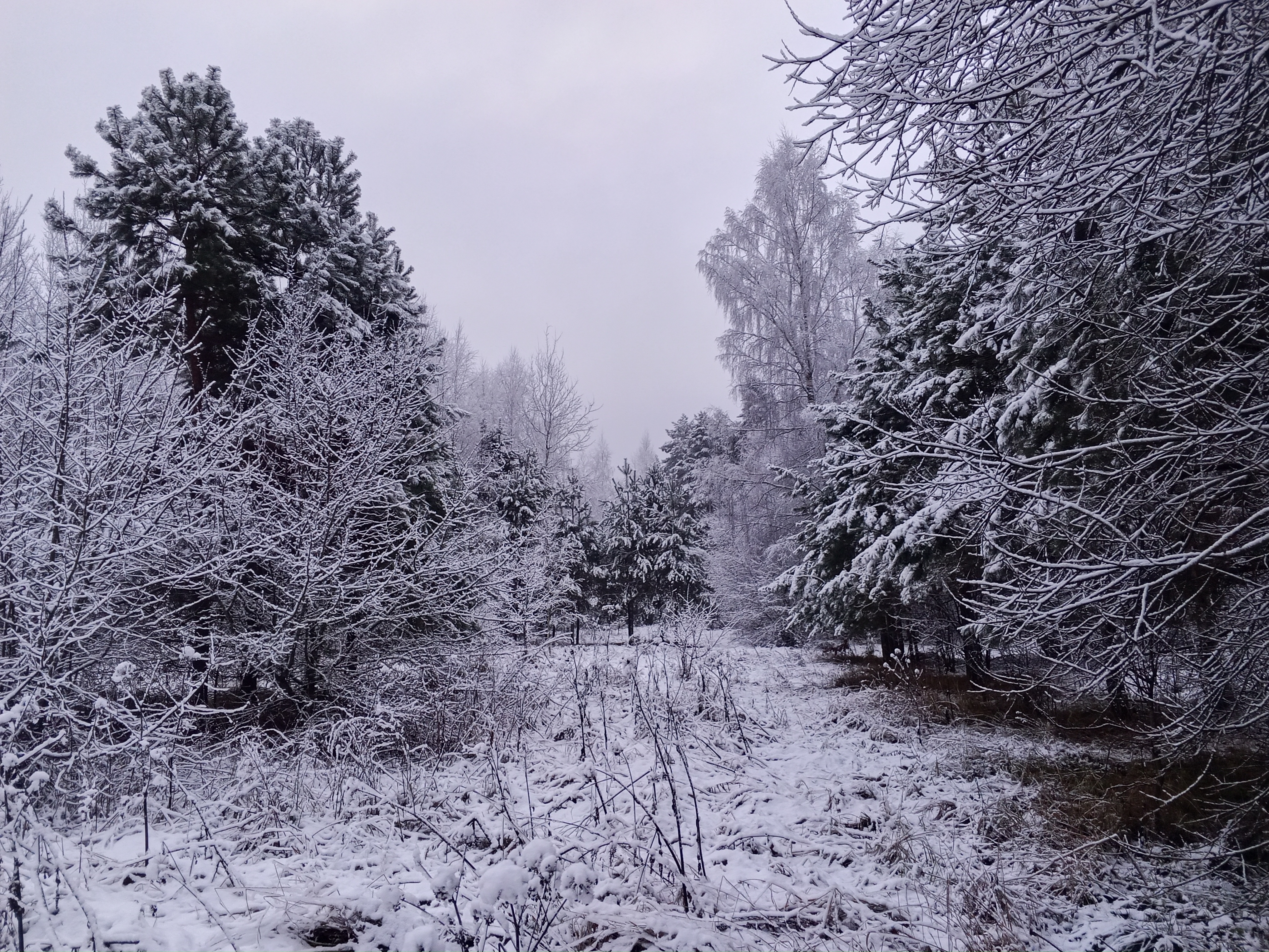 В Егорьевске в ночь на 23 ноября выпал снег. В округе снег покрыл газоны и тротуары, также отлег и на проезжую часть.
