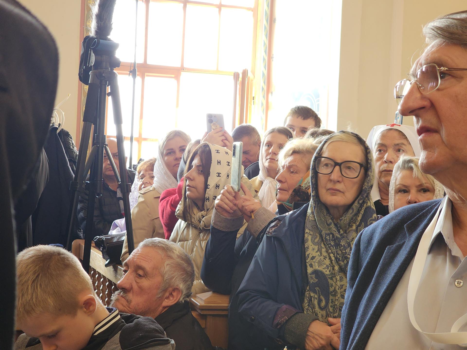 Храм не смог вместить всех желающих, поэтому на специальных экранах организовали трансляцию.