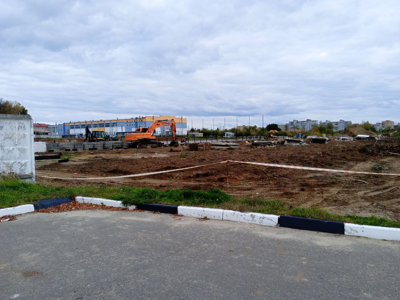 Строители продолжают реконструкцию стадиона «Мещера». Специалисты уже демонтировали часть старого ограждения вокруг него.