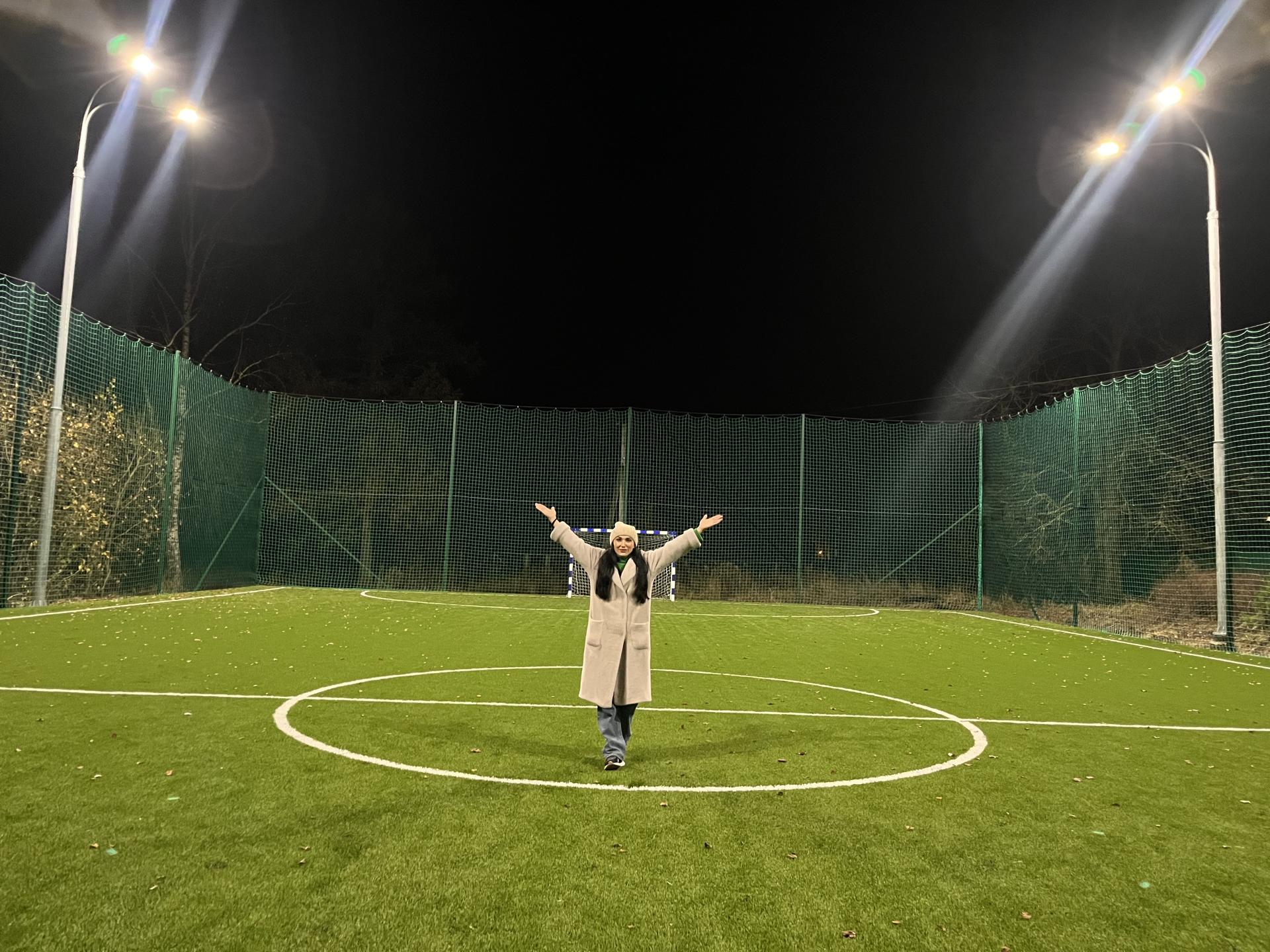 «Поле получило защитную сетку, чтобы мяч по время игры не улетал за пределы поля. Предусмотрели и скамьи для запасных игроков, которых от непогоды защитит навес», — рассказывает Паршикова.