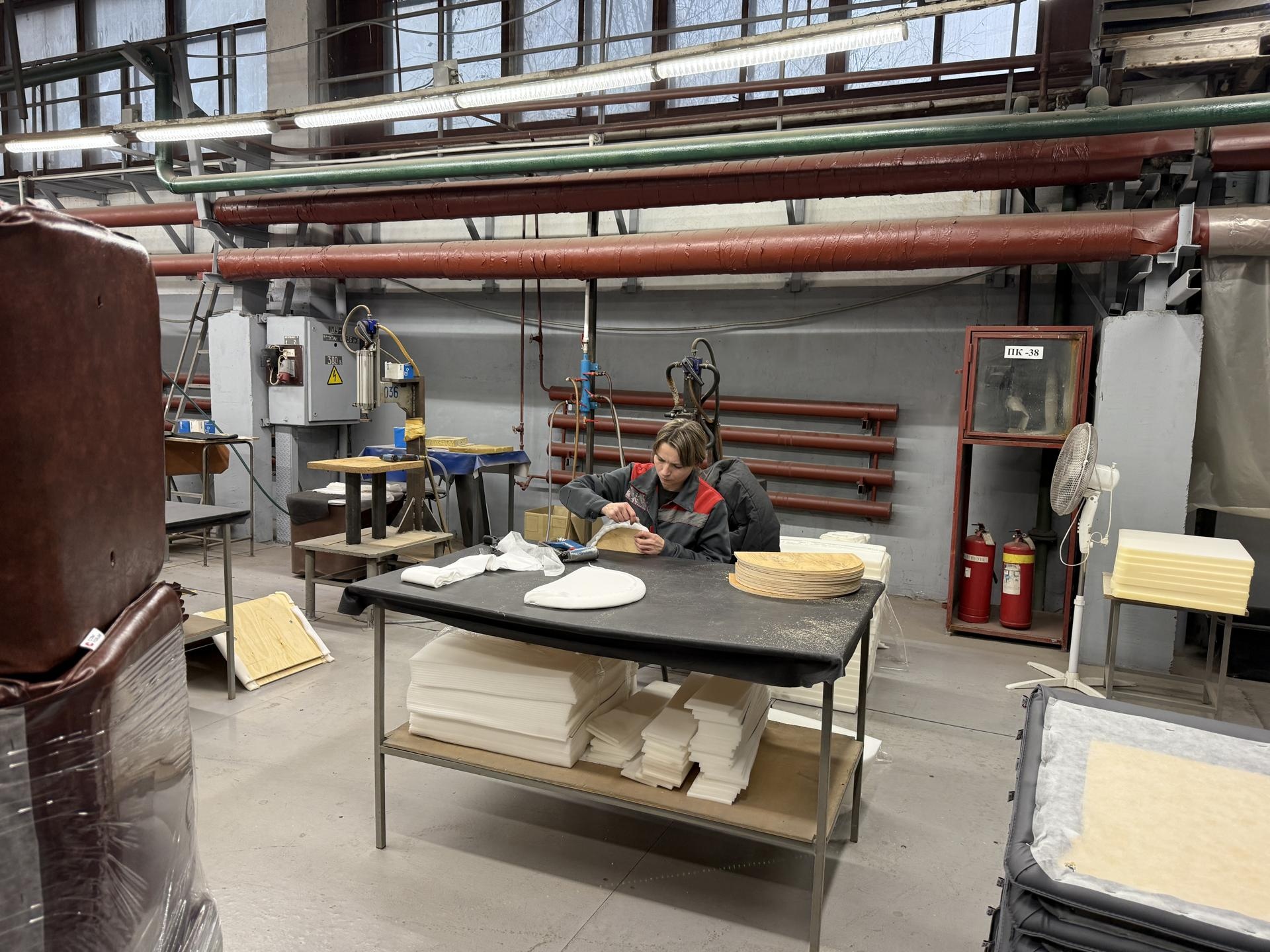 Руководитель фабрики Валерий Брулинский лично провел для бойцов экскурсию по цехам и производственным помещениям. Гости получили наглядное представление о полном цикле создания мебели — от заготовки материалов до сборки готовых изделий.