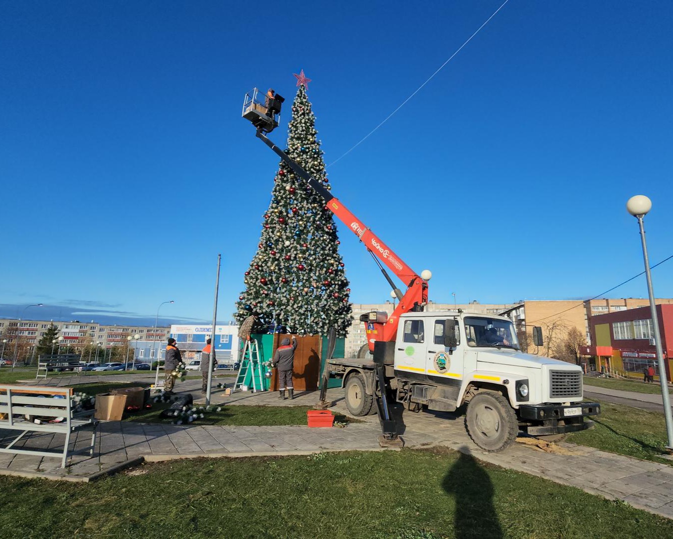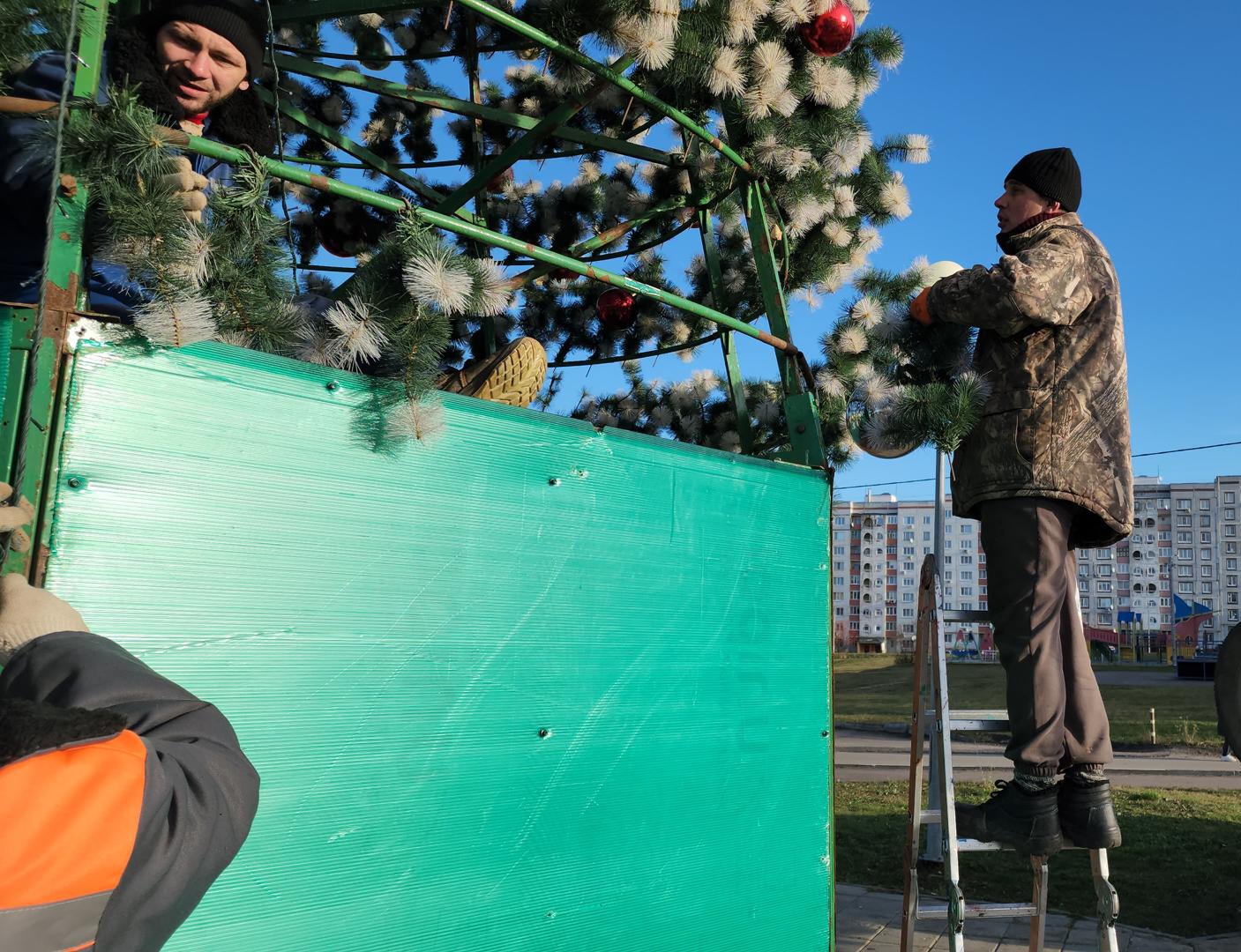 В Кашире дан официальный старт новогоднему украшению города. Первая праздничная елка уже наряжена в сквере у физкультурно-оздоровительного комплекса «Олимп». Сперва с помощью автовышки коммунальщики МУП «Благоустройство» собрали металлический каркас будущего дерева высотой 15 м. После на него закрепили многочисленные ветки, превратив конструкцию в пушистую красавицу.