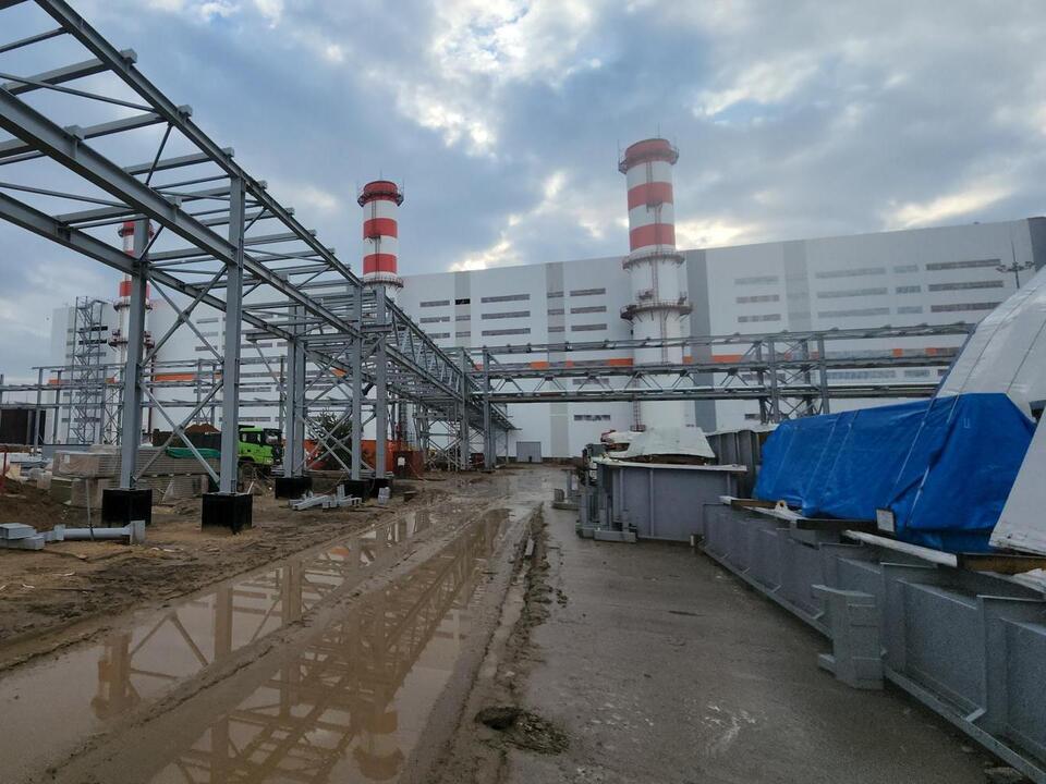Критически важным для продолжения работ зимой стало завершение теплового контура главного корпуса. Подача отопления создала все условия для бесперебойного монтажа высокоточного оборудования. На данный момент на стройплощадке уже установлена и подключена к генератору первая газовая турбина, собраны два котла-утилизатора.
